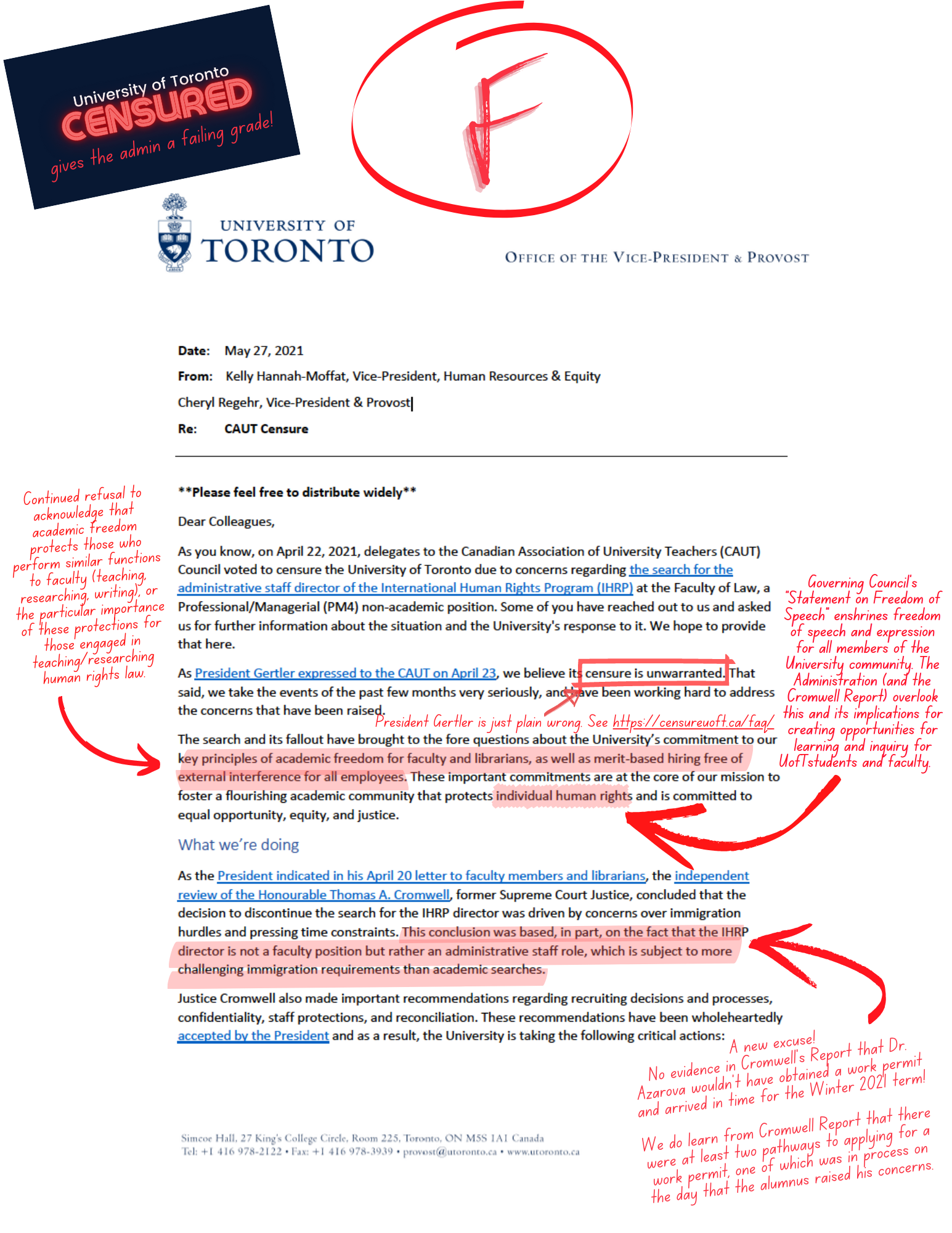 CensureUofT assesses the admin! July 2: Unconvincing Performance – Weak Script! June 7: Revise & Resubmit May 27: Fail! Share this: Click to share on X (Opens in new window) X Click to share on Facebook (Opens in new window) Facebook Like Loading...
